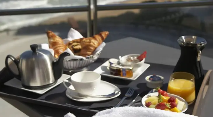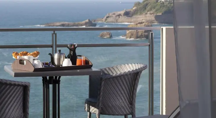 “The Art Decor period and the glamorous heyday of ocean liners are celebrated at Hotel Cafe de Paris Biarritz: an upscale boutique property with 19 rooms overlooking the gorgeous Grand Plage.”