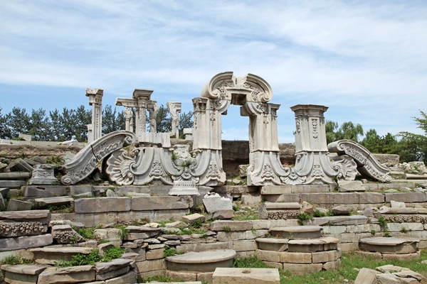 “Only the stark marble columns of the Western-style section remain, as the wooden portions were burned down by the Anglo-French forces.”