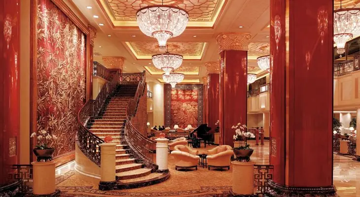 "Inspired by China’s imperial palaces (lacquered red pillars; gold bamboo panels; crystal chandeliers), with escalator access to one of the city’s most upscale shopping malls." Full review