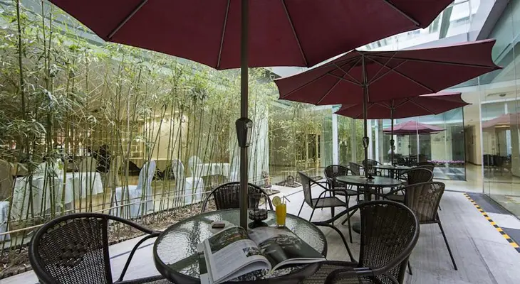 “A swish boutique hotel ten minutes’ walk from the Forbidden City, with clean lines, glass walls and a bamboo theme giving it a distinctive, modish look.”