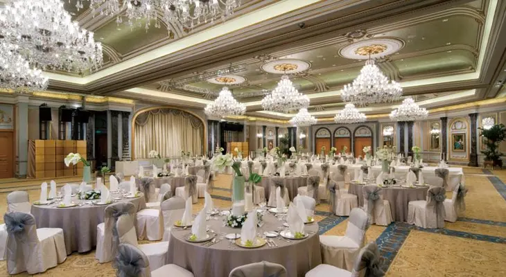 “Resembling an opulent scene from a 19th-century oil painting, this ritzy neoclassical hotel is a replica of a Versailles palace.”