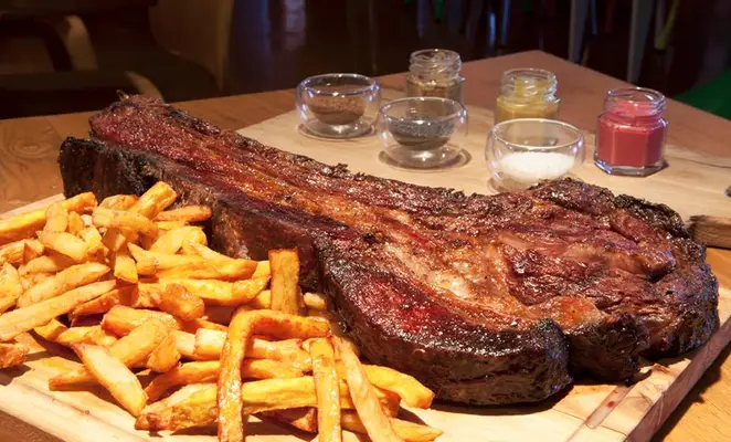 There are many dishes here to recommend, but among the best are "beef on fire" (pieces of beef placed on a bed of chives over burning charcoal) accompanied by ground chilies. — Fodor's