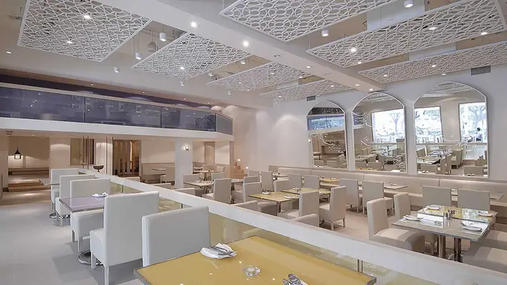 "Soaring ceilings in a split-level room and enormous mirrors decorated with Arabic script create a casually exotic atmosphere at this all-white Persian favorite." Full review