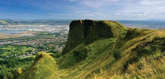 "Cave Hill is a black 360m-high cliff riddled with caves that mark the southern end of the Antrim plateau." Full review