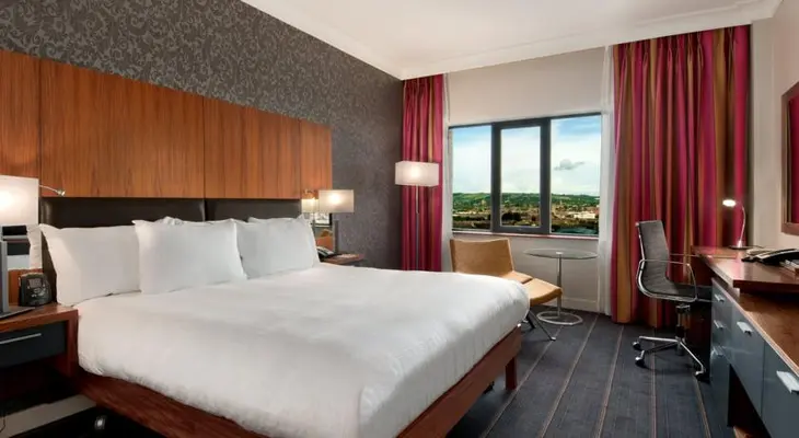 "The Hilton Belfast overlooks the River Lagan and is less than a mile from the city centre, with simple-yet-stylish rooms"