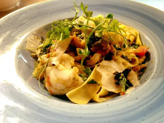 Here you’ll find plates such as roast local salmon, cooked in olive oil and lemon with anchovy butter sauce; crab and chile linguine; beer-battered fish and chips; or maybe a buttery plaice meunière. — Frommer's