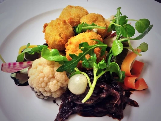 "Split-level bistro in a former coach house and stables, with exposed brickwork and a pleasant courtyard." Full review