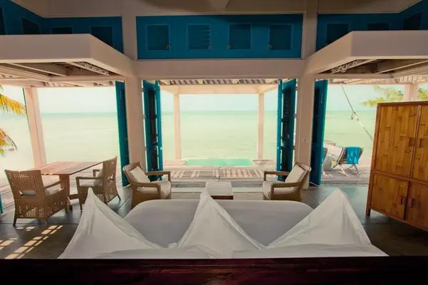 "Set on its own private four-acre island off San Pedro on Ambergris Caye, Cayo Espanto offers luxury beachfront one and two-bedroom villas as well as an overwater bungalow with a private dock"