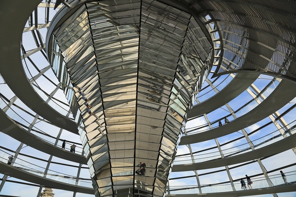 “British architect Sir Norman Foster lightened up the gray monolith with a glass dome, which quickly became one of the city's main attractions.”
