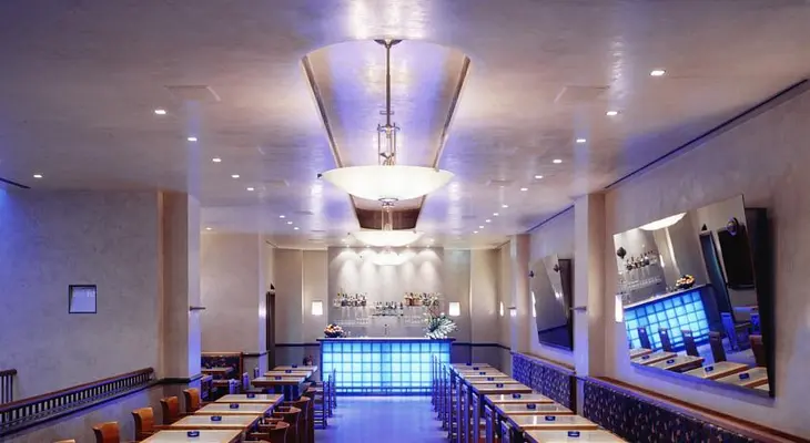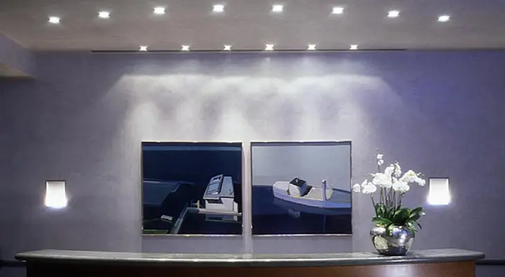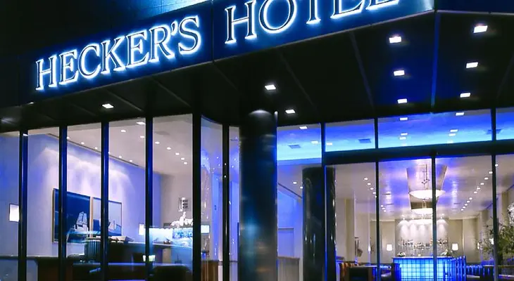 "The Hecker’s lobby, with ice-blue backlit bar, promises to be an overture to an edgy 21st-century-design hotel, but that tune doesn’t quite carry over into the rooms."