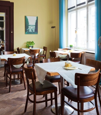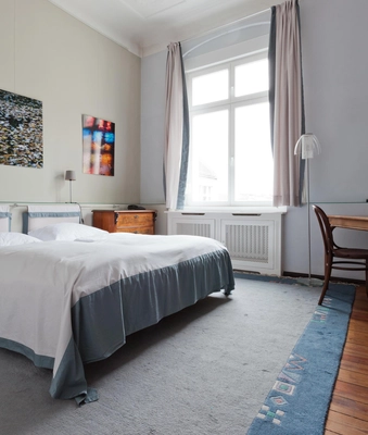 "Tucked away in a 19th-century mansion, this typical Berlin Hotelpension has incredibly high, individually designed rooms with original stucco, featuring only a few modern pieces."