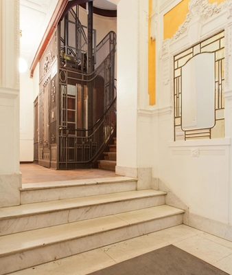 "The lift of this very special and charming hotel on the fourth-floor dates back to 1906."