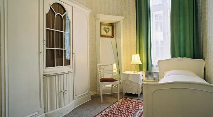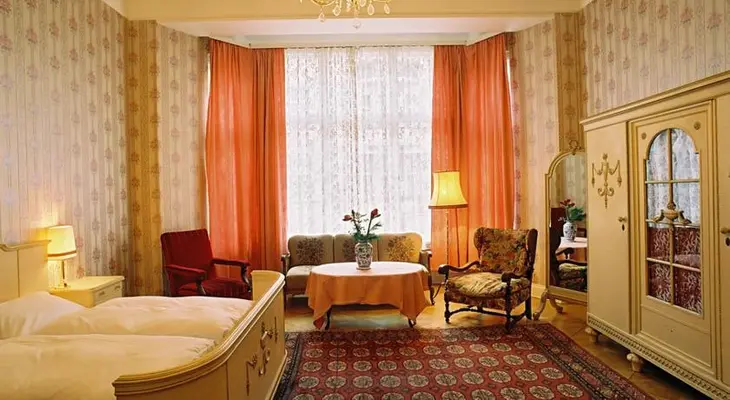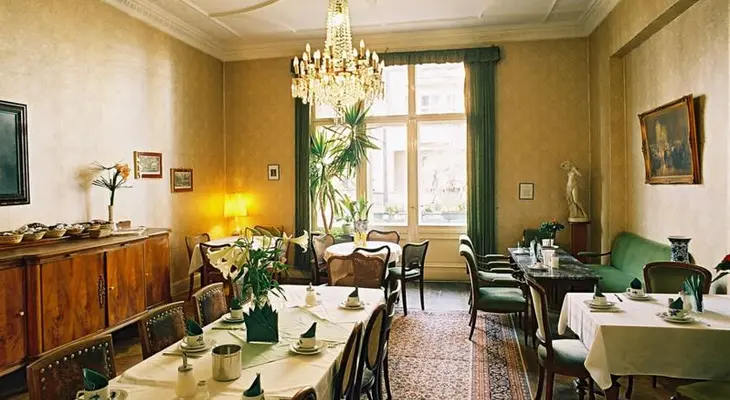 "One of the last historic Pensionen in Berlin, the hotel reveals its legacy even in the decor and furnishings: heavy curtains and carpets, old furniture from all periods."