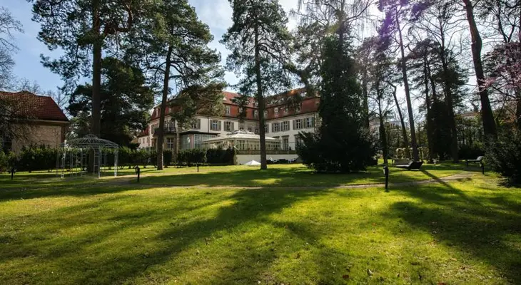 "Escape the grittiness of Berlin in grand country house style in a peaceful and upmarket residential area where driveways are filled with Porsches."