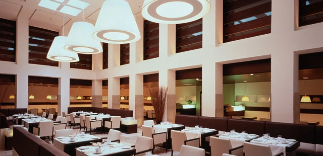"In contrast to the grand lobbies of the other five- and four-star hotels bordering historic Gendarmenmarkt, the reception area of the comparatively small 92-room Dorint has a quiet, monastic feeling."