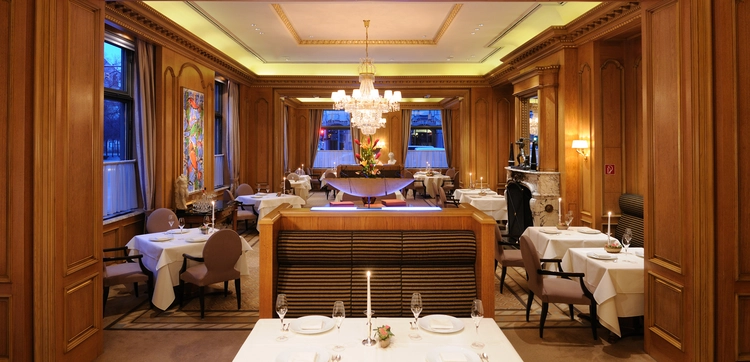 Housed in the luxe Regent Hotel, Fischers Fritz is a redoubt of old-fashioned plush, wood paneling, and hushed voices. — Condé Nast Traveler
