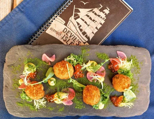 Island-style fish chowder and the lobster spring rolls are two good ways to start your meal. Moving on to entrées, you might try the Bermuda rockfish, suckling pig tasting, or seared fresh scallops. — Fodor's