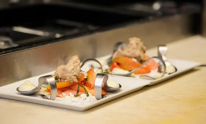 The smartly dressed waitstaff, bustling atmosphere, and art-filled walls lend an authentic European feel to this beloved Front Street bistro. — Fodor's