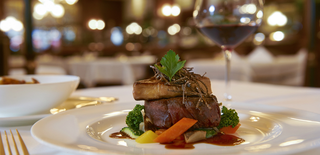“The restaurant at the Schweizerhof promises an elegant setting, an attractive decor with pretty alcoves, parquet flooring and stylish lighting.”