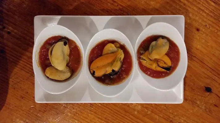 “Among the specialties are grilled mushrooms, stuffed with smoked cod and topped with apple cream, or other varieties topped with cured duck or salmon and liver.”