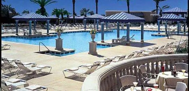 "1,740 guest rooms and suites, 10 restaurants, four lounges, 12 retail venues, a spa that employs 70 technicians, gulf-front pool with cabanas, and a full convention center and...golf course." Full review
