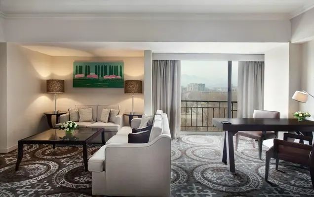 “Bishkek’s most international hotel includes a couple of restaurants, an outdoor pool, and fitness club.”