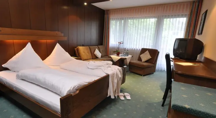 "Light, spacious rooms are done out in modern Black Forest style, with pale wood, forest-green tones and stag-embossed cushions." Full review