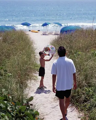 “The hotel's Cabaña Club, just under 2 miles away by shuttle, oversees a private stretch of beach and heated saltwater pool.”
