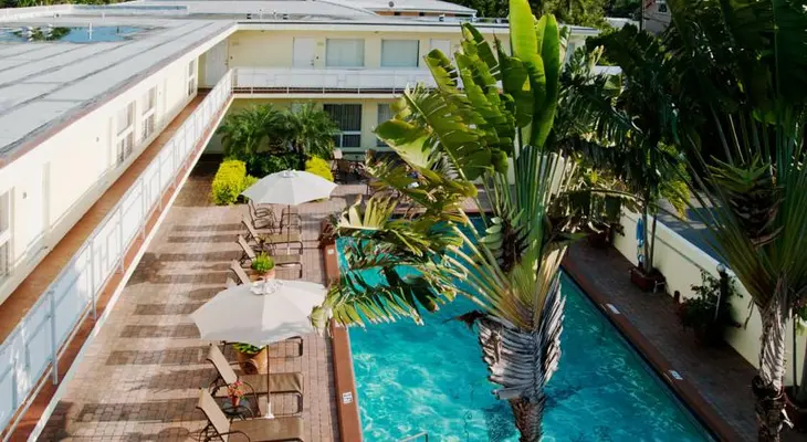 "On a hushed stretch of Ocean Blvd across from South Beach Park, this motel's retro exterior of atomic-era concrete lattice belies its modern, luxurious rooms." Full review