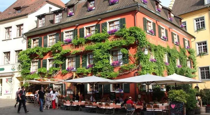 Rooms at this local landmark—a centuries-old, ivy-clad tavern on Meersburg's market square—have their own corner sitting areas, some with genuine Biedermeier furniture. — Fodor's