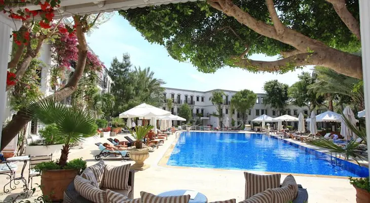 Secluded hilltop hotel near Bodrum, with a hip beach club, a hot restaurant and poolside cabanas. — Jetsetter