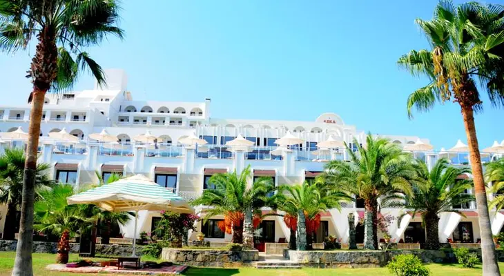 “Located on Bodrum’s nicest beach, the family-friendly, upscale Azka Otel offers panoramic Mediterranean Sea views.”