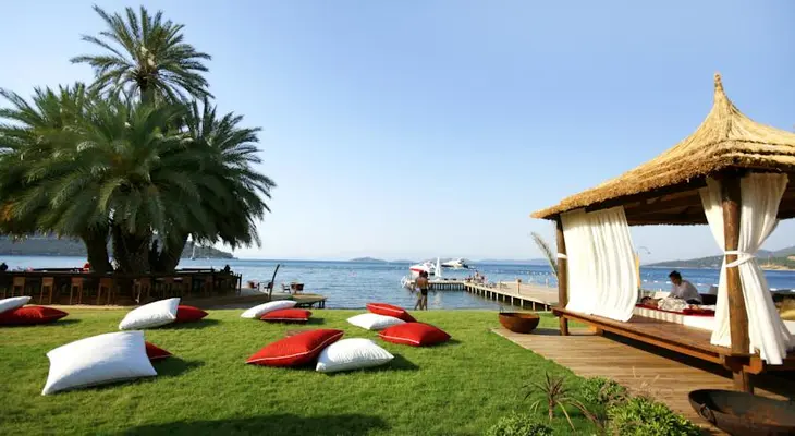 "Arty, contemporary seafront retreat near Bodrum, with lush gardens, a private jetty and sandy beach." Full review