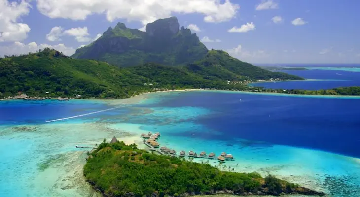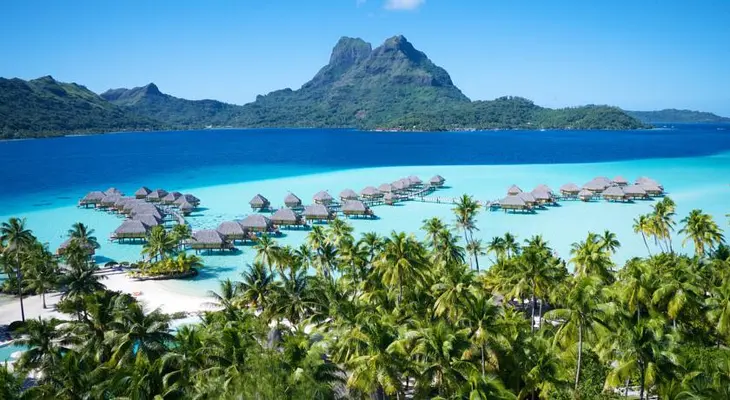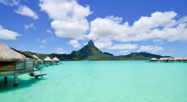 In full view of mystical Mount Otemanu, this photogenic Bora Bora resort near the northern tip of Motu Pitiaau caters to families by offering free snorkeling equipment, canoes, and windsurfing boards. — Travel + Leisure
