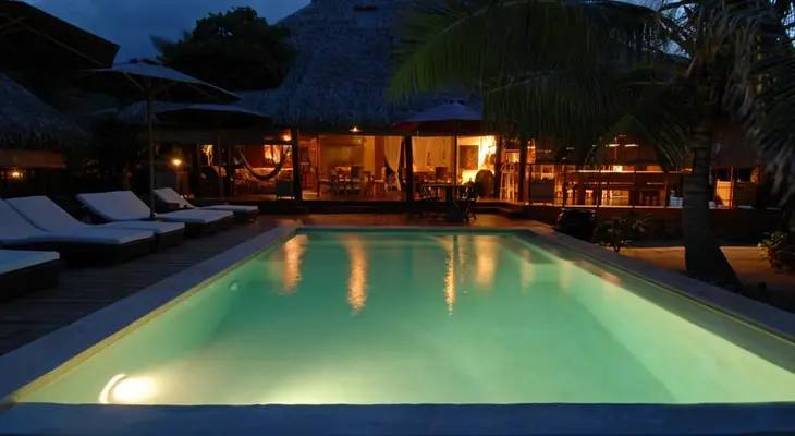 “Opened in 2010 by French couple, Isabelle and Jean-Luc, Green Lodge is a charming beachfront "pension" (guesthouse) with six Polynesian-style bungalows.”
