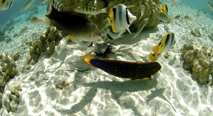 “Popular with honeymooners, this quiet resort is located on the white-sand beach of Motu Tautau, just west of the larger Taha’a island.”