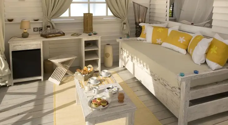“The three-pearl Opoa Beach Hotel is an oceanfront property with nine rustic-chic bungalows, run by a French couple.”
