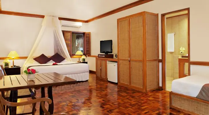 "Guests stay in cottage-style rooms or luxurious suites. The beachfront restaurant, serving Asian and Filipino cuisines, has a barbecue buffet on Friday."