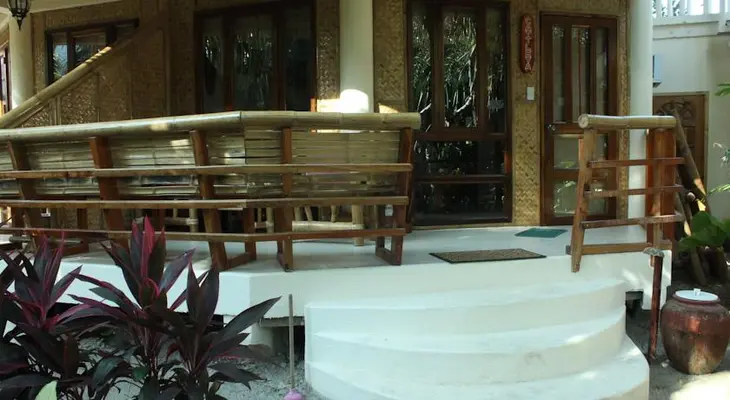 "20 rooms and apartments styled after traditional Nipa huts are set back in a jungle garden, merging a traditional rustic atmosphere with air-conditioning, minibars, and flat-screen TVs." Full review