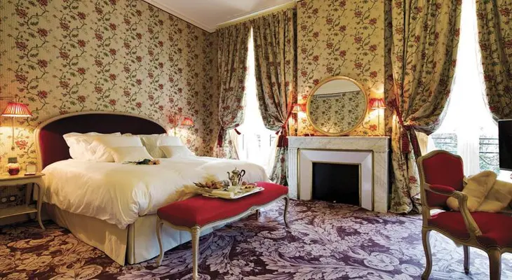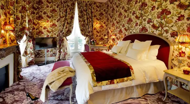 “An impeccably preserved 19th-Century facade hints at the splendor inside the six-room La Grande Maison decorated in the opulent style preferred by Napoleon III.”