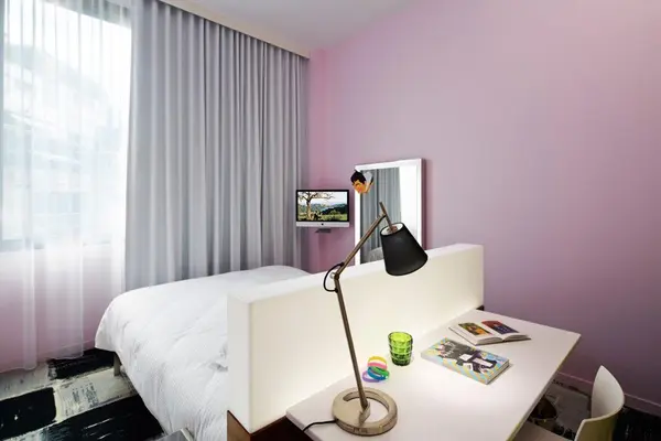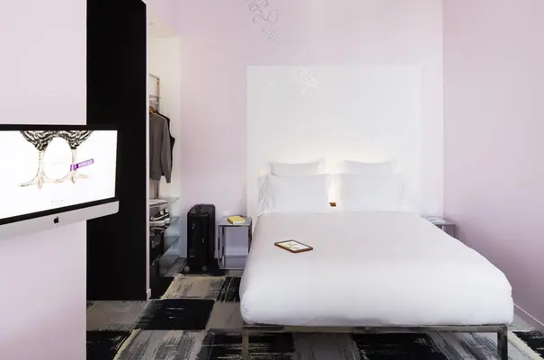 “With personalised iMacs, video booths and free movies in every room, Mama Shelter is up-to-the-minute.”