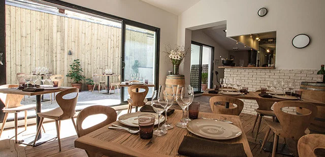 “Helmed by one of the hottest chefs in Bordeaux, this intimate French eatery and corner wine shop was built with local stone, iron and oak beams and has a courtyard garden for plein air dining.”