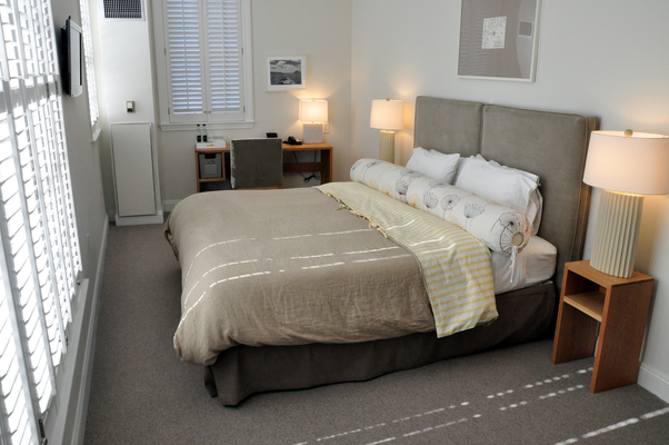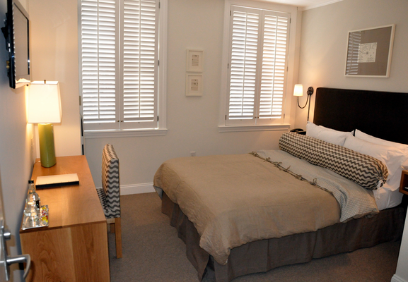 “Rooms are fairly small but chic with soothing colors, plantation shutters, and flat panel televisions.”