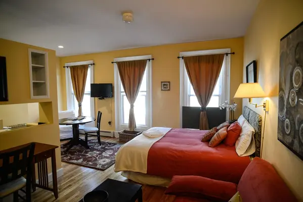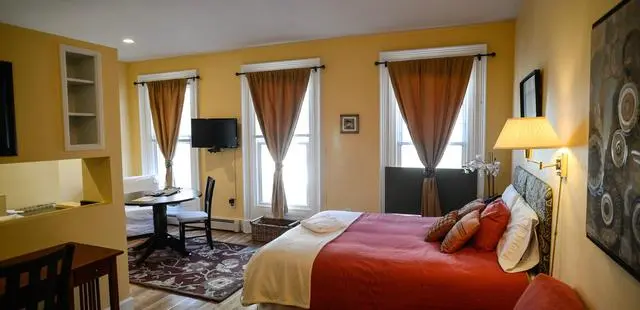 “Fourteen carefully renovated short-term rental apartments featuring modern amenities (flat-screen TVs with cable, wi-fi) in brightly, individually decorated spaces with full kitchens.”
