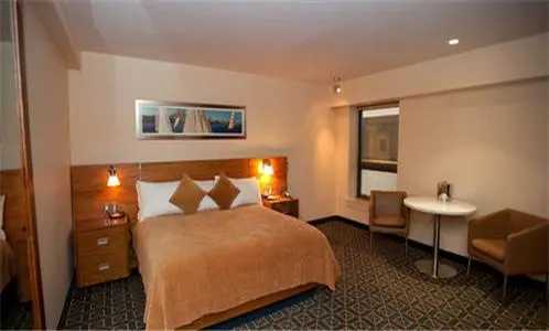 For a great view, request a room overlooking the city; for a quieter stay, book a room that faces the interior atrium.