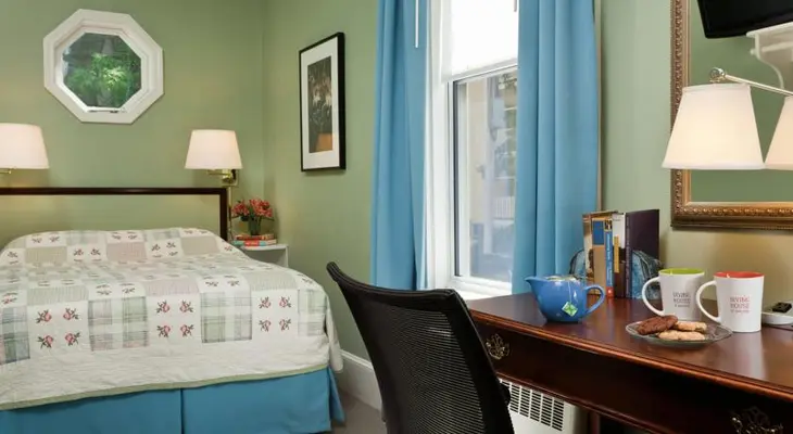 “No-frills, endearing, friendly option near Harvard Square with (coin-operated) laundry facilities and tasty breakfast included; both shared and private baths.”