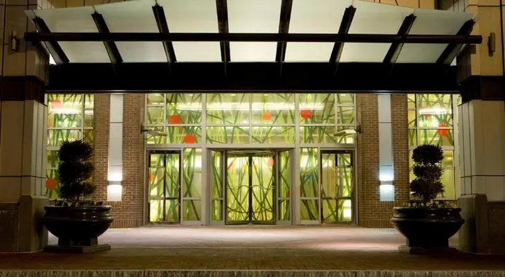 "Contemporary hotel anchoring an office tower near MIT."