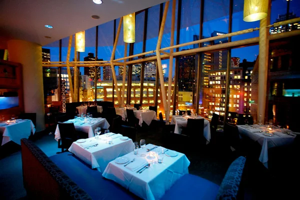 "The contemporary space is filled with brushed metals, natural light, curvy banquettes and cool angles with an all-encompassing view of Downtown Crossing." Full review