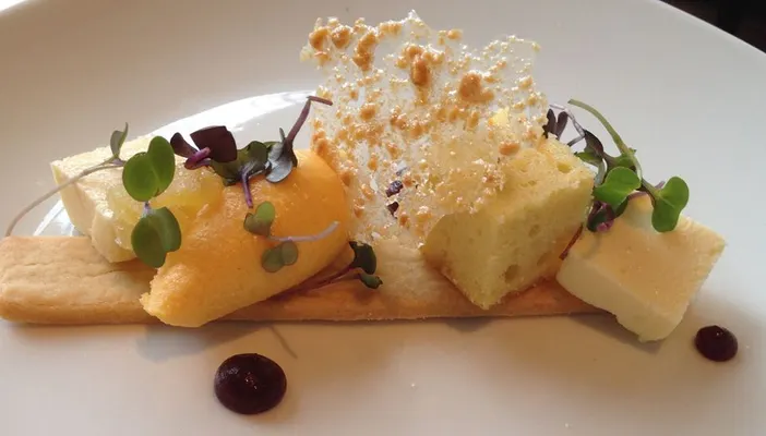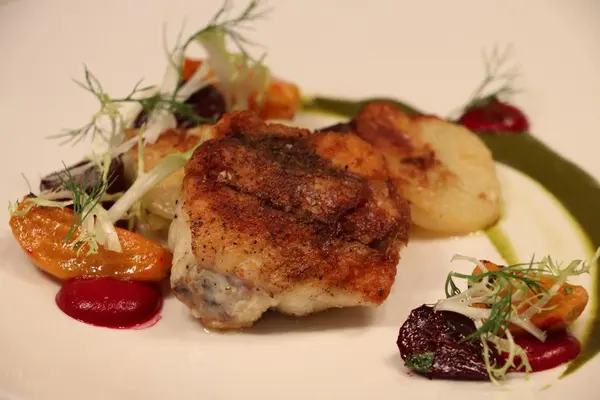 "Incorporating local, seasonal ingredients, chef Dumont creates dishes like rooibos tea—marinated duck breast with Bing cherries and cocoa-crusted venison with baby turnips and carrots." Full review