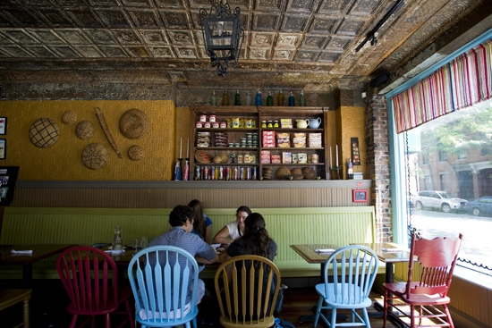 "This dining room with a tin ceiling in an 1890s building is the hot spot for listening to the new wave in Latin music while enjoying arepas."